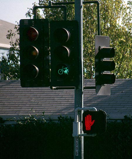 The bicycle is a legal vehicle on the roadway; therefore, when riding on a roadway, a cyclist is required to follow traffic signal directions, as would a motorist. In addition to roadway signals, there are instances where a specific bicycle signal would be uses, such as for road crossings of multipurpose trails. Cost estimates are provided for bicycle and pedestrian signals, 2-way pedestrian signal activation, 4-way pedestrian signal activation, and loop detectors.