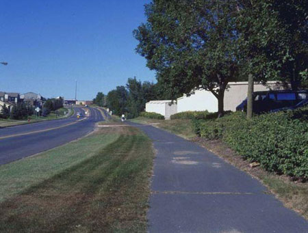 Off-street bicycle facilities are separate from the motor-vehicle oriented roadway and typically along multiuse paths or trails. The trails may be adjacent to the roadway, or a trail on an abandoned railroad right-of-way, or other separate facility such as through public parks. If an off-street bicycle trail runs next to an arterial street, it is a roadside bicycle trail. Otherwise, it is a non-roadside bicycle trail.