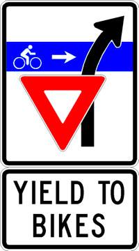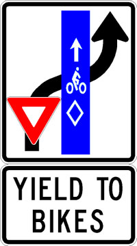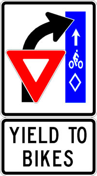 At each location, one of several innovative “YIELD TO BIKES” signs was installed with a design appropriate for the particular motorist maneuver and configuration at that site (Fig. 4).
