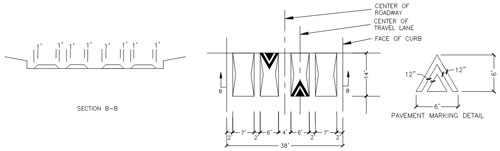Figure 6 shows the speed cushion with pavement marking detail that is in compliance with the MUTCD ME.