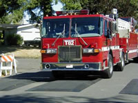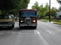 Figure 5. Fire engine over speed cushion — too close to parked vehicle.