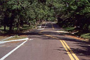 A new or re-constructed roadway could also be designed in a serpentine fashion to keep sight lines short and force vehicles to make lateral shifts. Such a design could even be used where there is no curb such as in parks or rural areas where the scenic qualities also would support such a design.