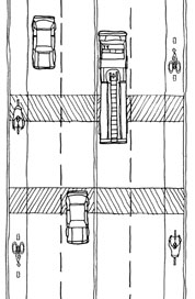 and tables, but allow wide-axled vehicles such as buses and fire trucks to