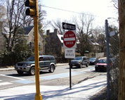 Other known U.S. cities with some variation of the markings described above include Chicago, IL; Cambridge, MA; Portland, OR; Warren and Waitsfield, VT; Seattle, WA; and Sacramento, CA. There continues to be movement toward adoption of some form of the arrow or chevron as a national standard, but as of this writing this is not complete.
