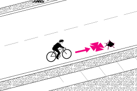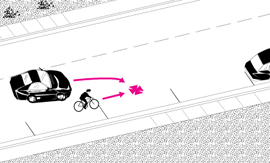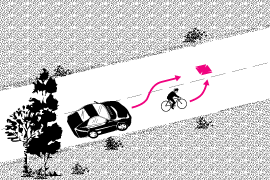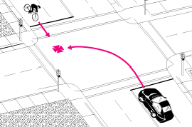 The bicyclist turns or merges left from the right side of the roadway. The rider fails to see or yield to a motorist coming from behind and is hit by the overtaking motorist. The crash also could involve a bicyclist riding out from a sidewalk or path beside the road. Speed of overtaking vehicles may be a factor in this group of crashes. The motorist also may not see the bicyclist, or may not suspect that the bicyclist will turn in front in time to react.