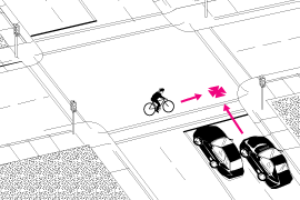 - Reduce curb radii to slow motor vehicle turning speeds (16).