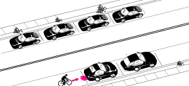 The bicyclist is overtaking and strikes the motor vehicle from behind. These crashes tend to occur because the bicyclist tries to pass on the right or left, the bicyclist strikes a parked vehicle while passing, or the bicyclist strikes an extended door on a parked vehicle while passing.