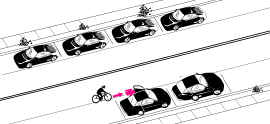 A motorist, bus, or delivery vehicle strikes a bicyclist when pulling into a parking space or stop.