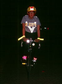 Data from the National Center for Statistics and Analysis indicate that 31 percent of bicyclist crashes occur between the hours of 5 p.m. and 9 p.m.2 Not all of these crashes would result from lack of lighting associated with the bicycle, but the problem is considerable. Analysis of recent data from North Carolina shows that almost 20 percent of bicycle-motor vehicle crashes occur under conditions of darkness (http://www.pedbikeinfo.org/pbcat/pdf/summary_bike_facts5yrs.pdf).6 An additional 5 percent of crashes occur at dusk. This is an educational issue for bicyclists, and local police need to be more willing to let bicyclists know if they are riding with improper equipment, whether through a warning or a citation. Besides headlights and rear reflectors, a variety of pulsing lights for the bicycle or the bicyclist now exist.