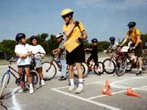 Instructors look on while schoolchildren in Texas maneuver through the SuperCyclist course. |