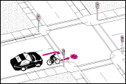 In this crash type, the motorist turns right across the path of a cyclist who is going straight ahead. More than half the bicyclists are riding with traffic on the roadway. The bicyclist is typically riding on the roadway (although one-in-three riders are on the sidewalk and one-in-five are riding the wrong way against traffic) and the vehicle driver passes the cyclist and then cuts across in front of the rider. The motorist may misjudge the speed of the cyclist or believe (mistakenly) that the bicyclist should wait for them. While bicyclists certainly need to be aware of the danger of this happening and be ready to take evasive action, educational efforts should focus on the driver.